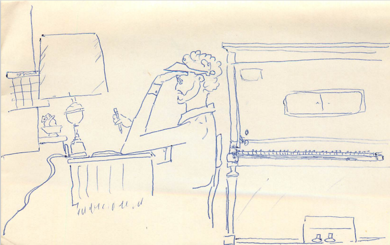 One of the PowerPoints on the Password Protected version of this “Other” page has some interesting sketches that date back to college days. This self-portrait is one of the slides of that presentation.