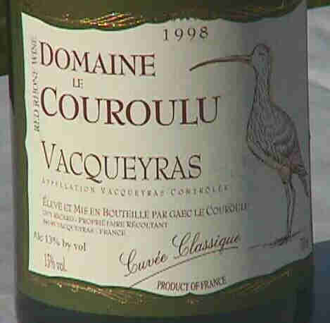 Vacqueypas is in the Southern Rhone Valley between Chateauneuf du Pape and Gigondas. Couroulu is the Provencal word for the bird on the label.
