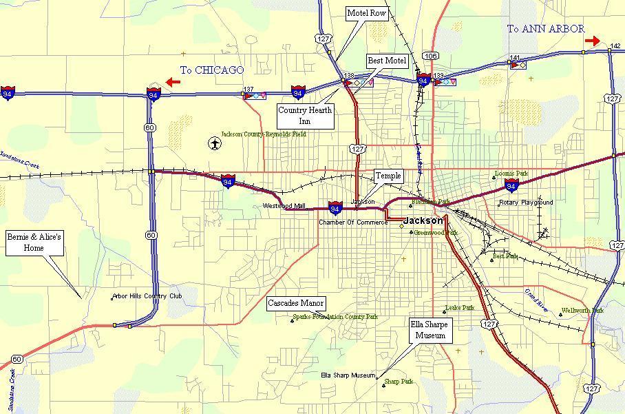 [ Up ] [ Motel Row ] [ Directions to Temple Beth Israel ] [ Getting to Cascades Manor ] [ Getting To Alice and Bernie's ] [ Getting to Ella Sharp Park & Museum ] [ 1104 S. Higby ] Site Map